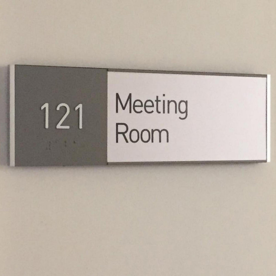 Interior signgae ADA sign raised letters wayfinding office building sign wall conference room sign braille signage