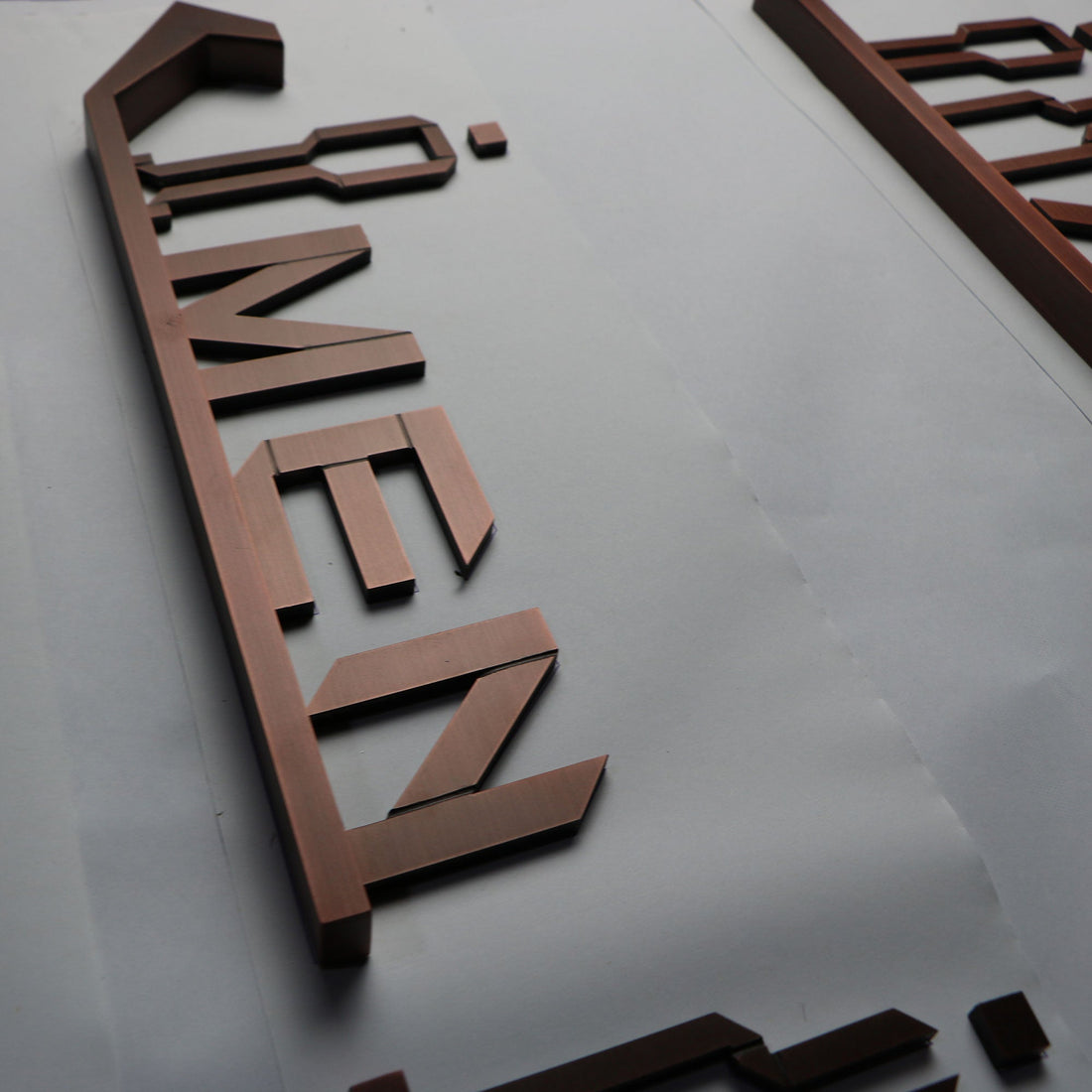 Brushed copper vintage metal door signage letters 3D non illuminated letters signs for advertising customized