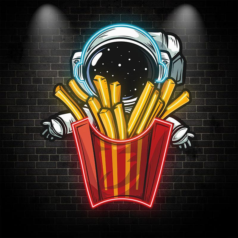 Astronauts Hugging French Fries in Space LED Neon signs| Creative Fun Decorative Lights | Home & Store Lighting