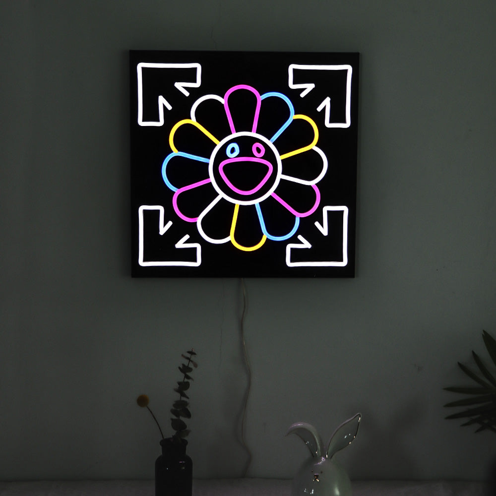 colorful sunflower neon sign, led neon flex sign with black backboard