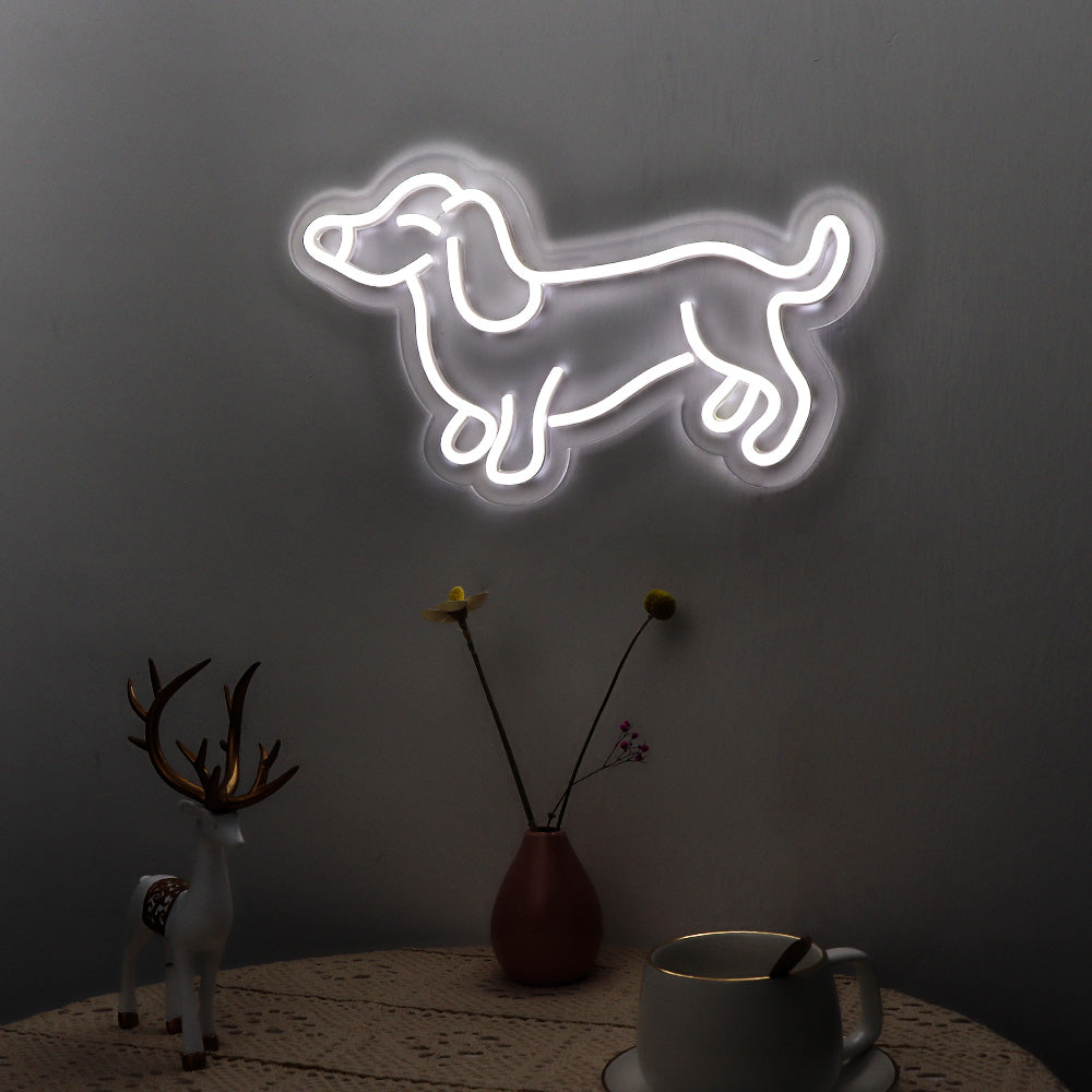 Cute Puppy Neon signs Lights - LED Lights, Head with Swimming Ring and Hand with Pizza, Funny Home Decoration, Perfect Party Vibe