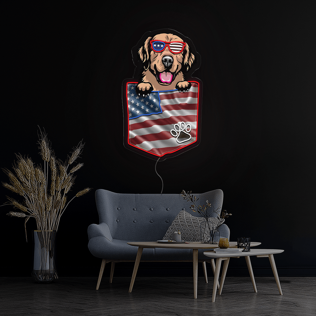Dog Love American Flag 4th Of July Artwork Neon Sign