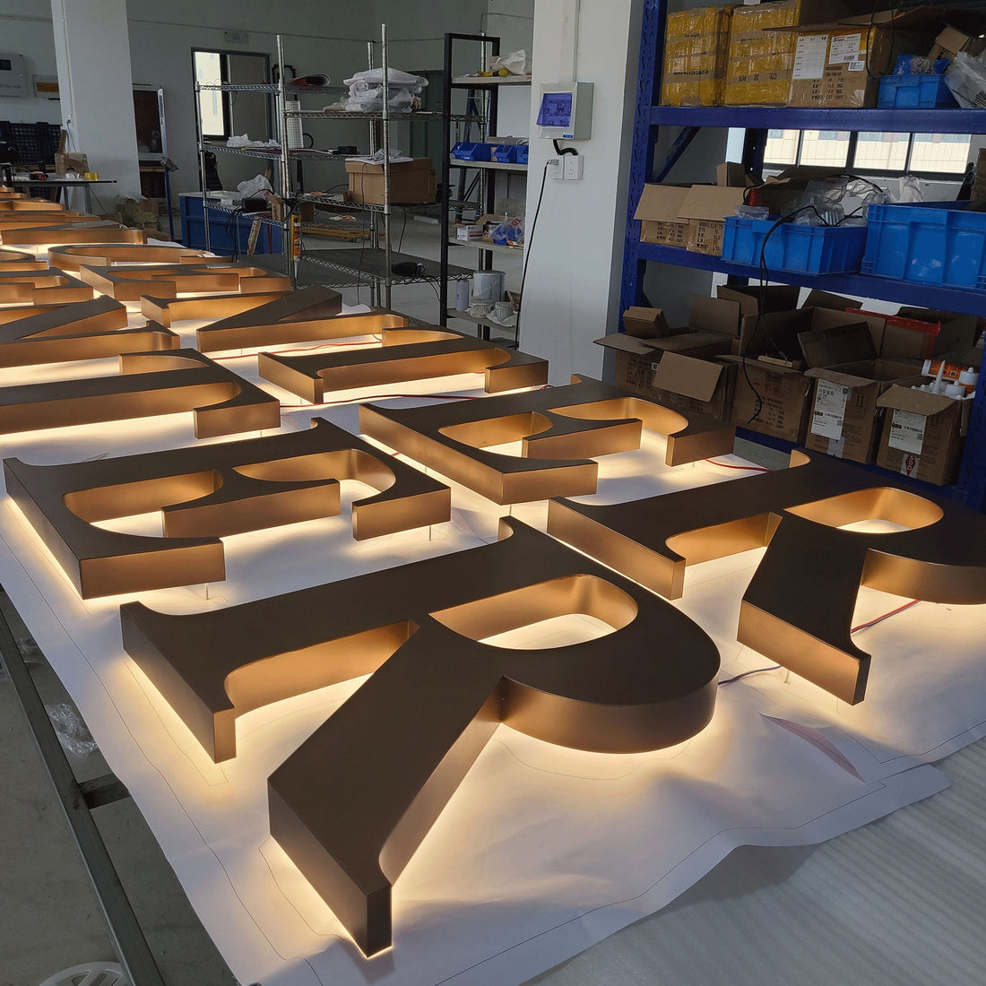 Led Channel Letters Outdoor Store Front Signage 3D Stainless Steel Logo Sign Halo Lit Electronic Illuminated Signs