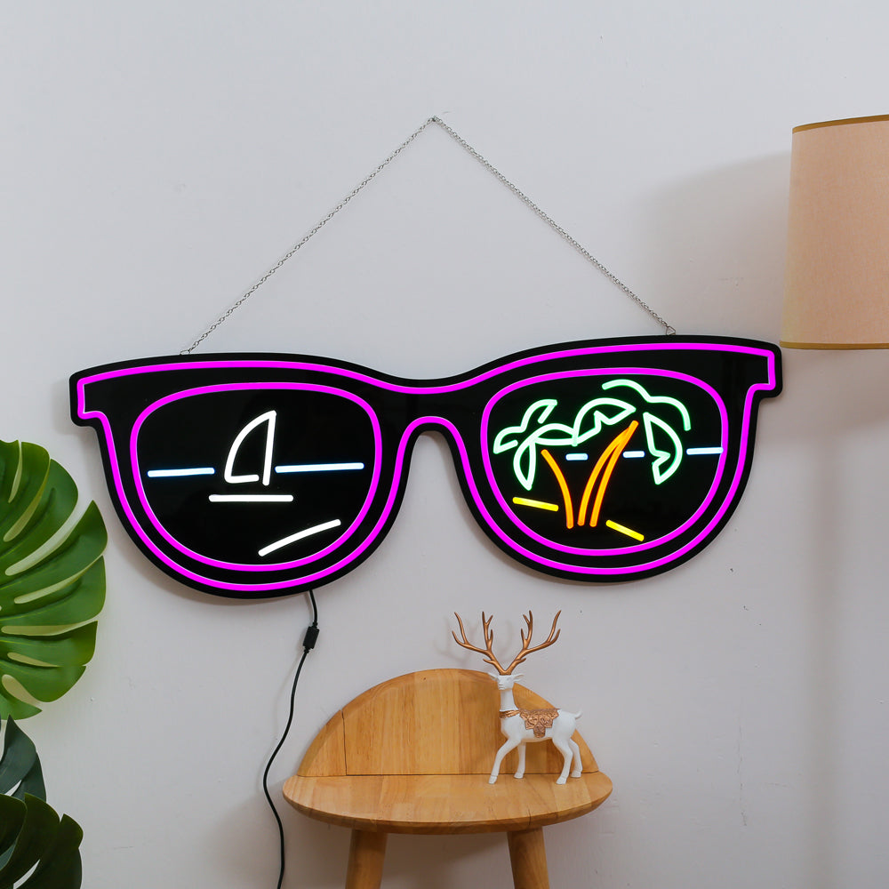 purple glass neon sign with black backboard,led flexible neon sign hanging on the wall