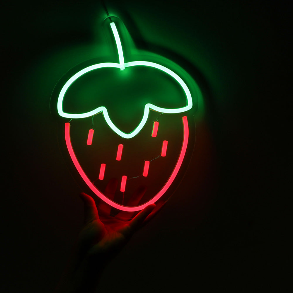 Red strawberry neon lights, wall mounted led neon sign for kids room