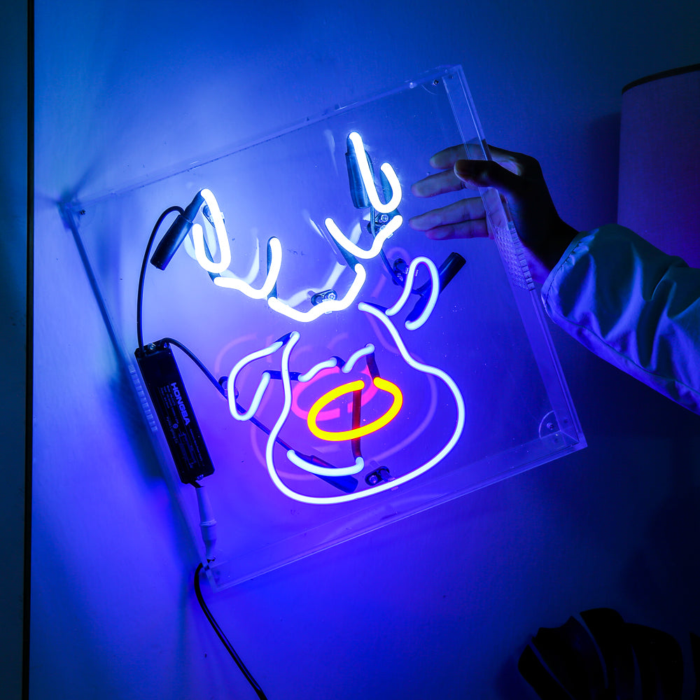 Reindeer neon sign for X'mas,home decoration neon sign,glass neon tube sign in box