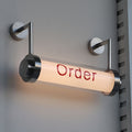 Round tube lightboxes are essential signs in commercial areas such as restaurants, coffee shops, etc. They are usually installed inside the shop and when you light it up, they are eye-catching enough. You can print text on acrylic to clearly display various functional areas to people, such as ordering and dining areas. In addition, you can also install this logo at the entrance of the store, and the store name or brand information will be displayed on the lightbox. Passengers can easily be attracted by this special design and know more about your business.