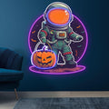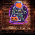 Astronaut Carrying Pumpkin Lights LED Neon signs | Purple Bat Glass Bubble Background Decorative Lights | Creative Halloween Home Lighting
