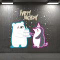 Bear & Bunny Lift Cake Happy Birthday Neon signs | LED Decoration Lights | Cute Birthday Celebration Decoration | Creative Party Favors
