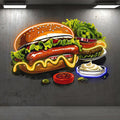 Bountiful Burger Feast - Hot dogs and fresh veggies are perfectly paired with juicy steaks for a delicious neon treat! neon signs