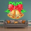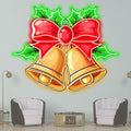 Christmas Bells LED neon signs Light Decoration - Red Bow Tie Decoration with Green Leaves Surround, Perfect Holiday Home Decoration