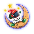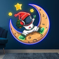 Christmas miracle on the moon: astronauts in Santa hats, holding Christmas trees neon signs