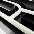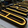 Acrylic neon signs, often dubbed LED faux neon signs, stand as modern innovations that have gained considerable traction in recent years. LED neon signs mirror the aesthetic allure of traditional neon signs while offering significant advantages. Faux neon signs can be produced in two ways - either with flexible tubing which can be fixed into the required shape, or with solid acrylic that can be cut to shape. For the above presented sample, we used the solid acrylic to make it. What's special is that we added a outer shell of stainless steel to the acrylic neon lights, making the appearance of the entire sign more clear and eye-catching.