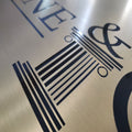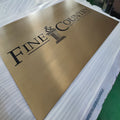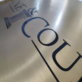Modernize an office wall, entry, or reception area with these sleek, sophisticated, engraved stainless steel signs and numbers. Perfect gifts for weddings, anniversaries, or for providing clear, graffiti proof, signage in a business. They can be made in many different sizes, and they can be cut in squares, circles, ovals, or rectangles. A variety of fonts is available, so you can customize etched and engraved signs to your exact needs.