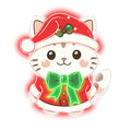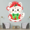 Cute Christmas cat neon signs: wearing a red dress and a green bow tie, bringing holiday joy and coziness