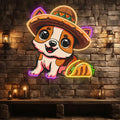 Cute Puppy Neon signs Lights - LED Lights with Hat Smile Next to Burger Design, Creative Home Decor, Perfect Party Vibe