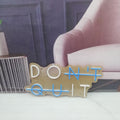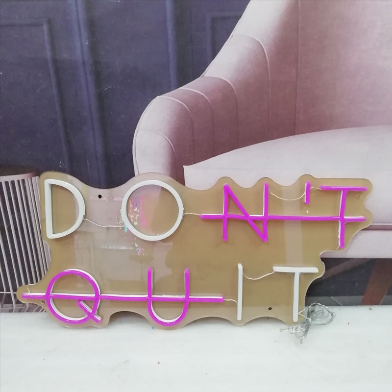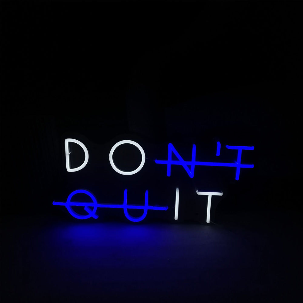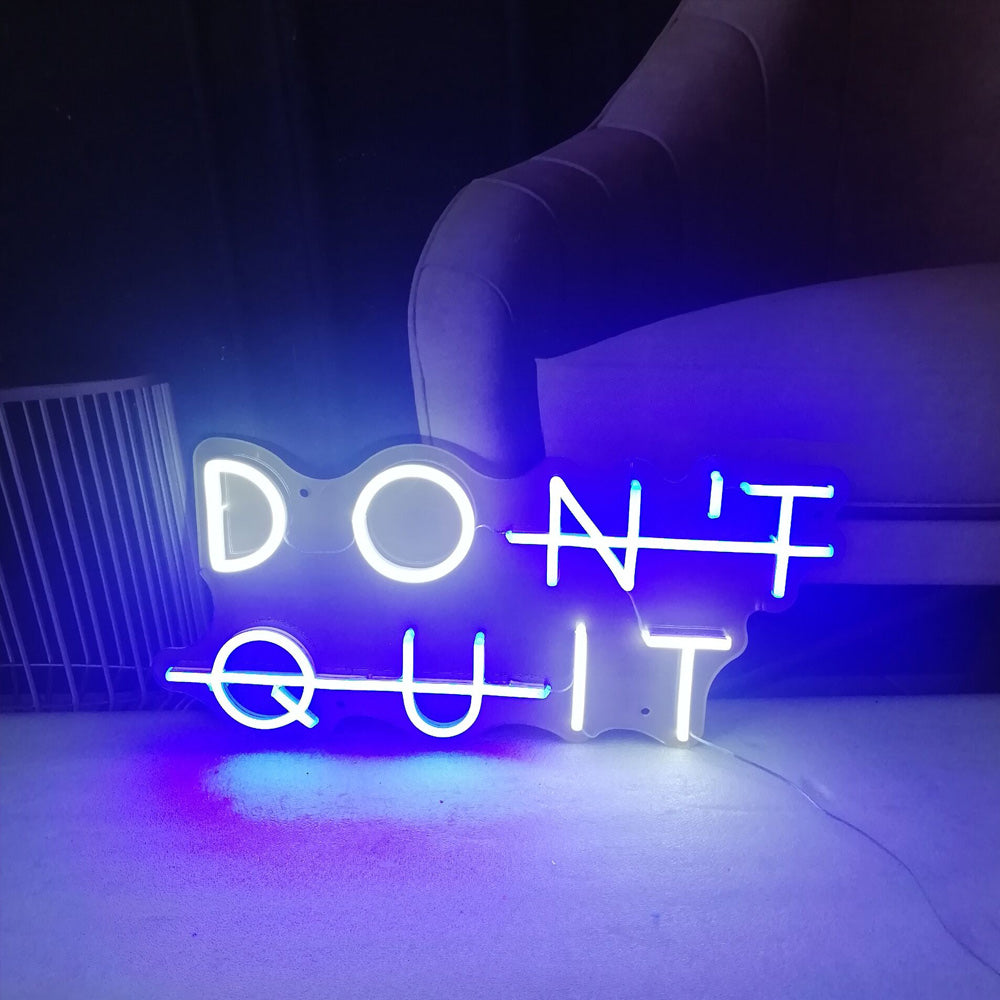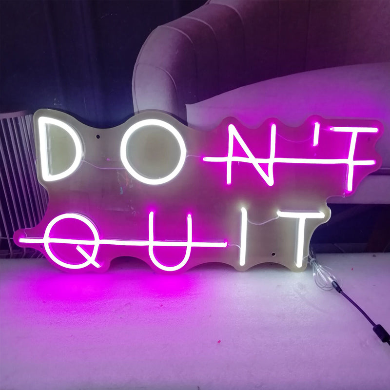 This "Don't Quit" neon sign is the perfect addition to any workspace, providing a constant reminder of perseverance and determination. Made with high-quality neon and a sturdy backing, this sign is durable and long-lasting. Illuminate your motivation with this unique and inspiring piece.