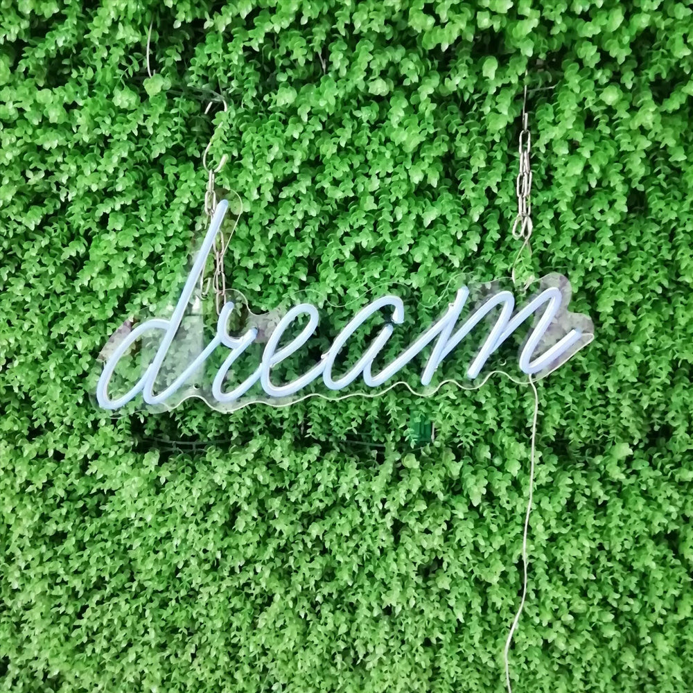 Illuminate your workspace with the "Dream" Neon Sign. This eye-catching sign will inspire you to chase your aspirations and make your dreams a reality. The bright neon lights create a captivating display that will elevate your environment. Add a touch of motivation to your space and let this sign be a reminder to always dream big.