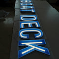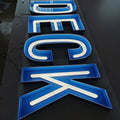 Acrylic faux neon letter signs typically consist of a base layer of high-quality, durable acrylic material. The acrylic is shaped and engraved to form the desired letters or shapes, providing a smooth and sleek surface.