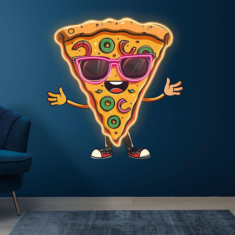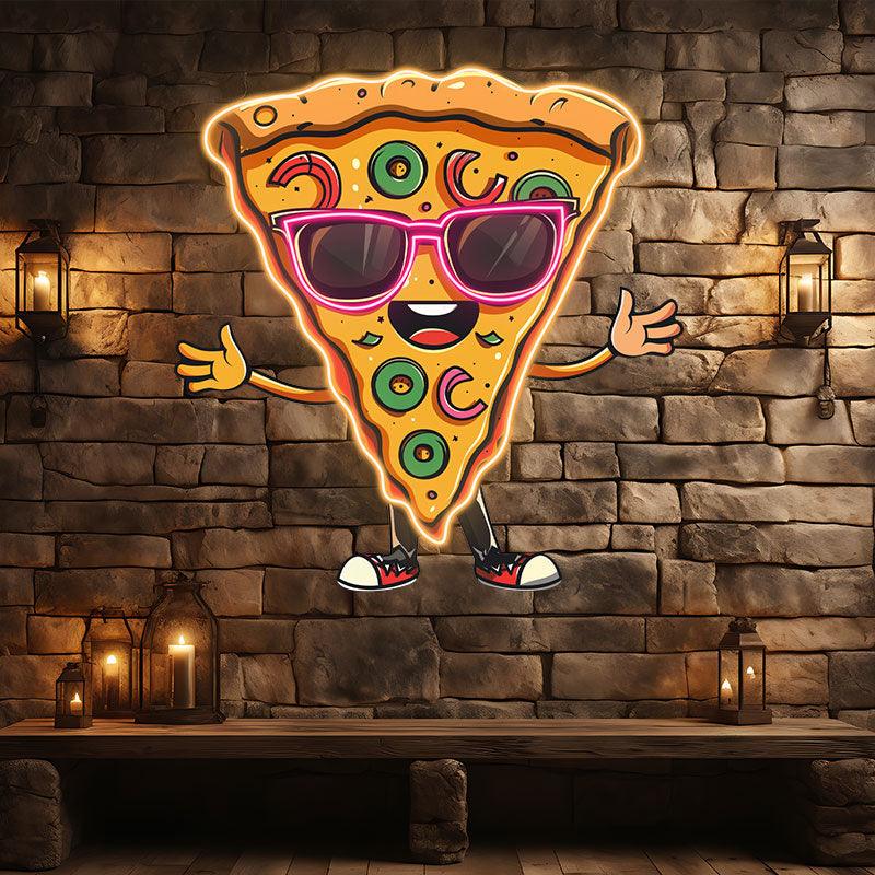 Funny Pizza Neon signs Lights - LED Lights, Smiley Face in Sunglasses Design, Creative Home Decor, Perfect Party Vibe
