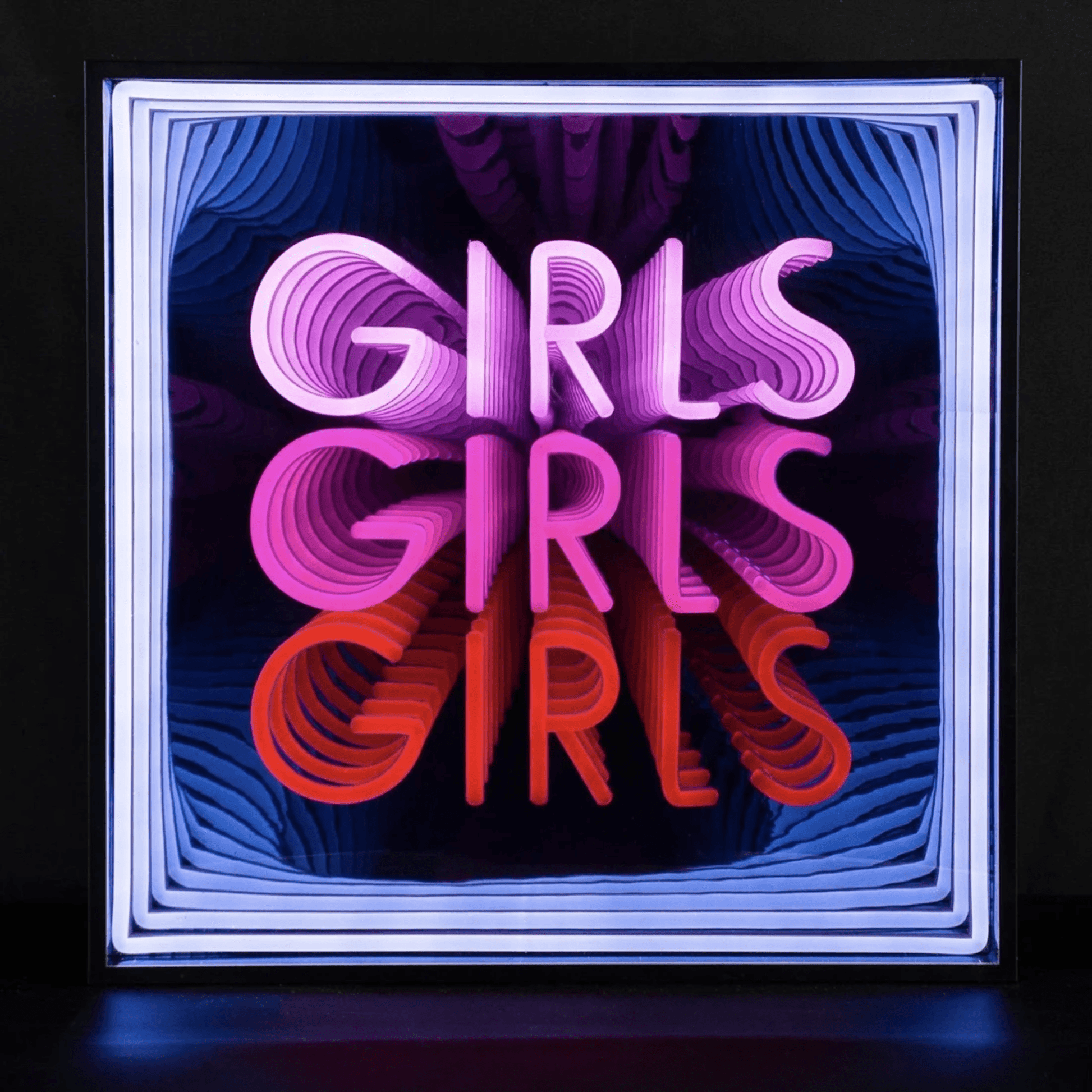 Bring vibrant energy to your decor with our "Girls Girls Girls" LED Infinity Neon Sign and make a statement that shines bright.