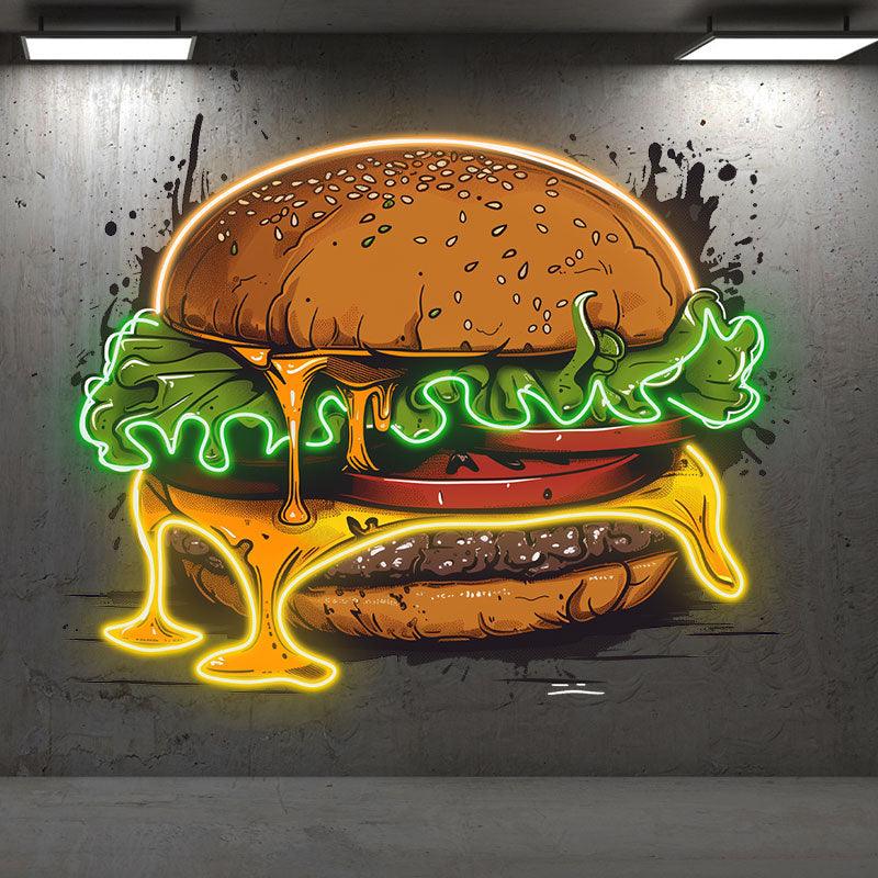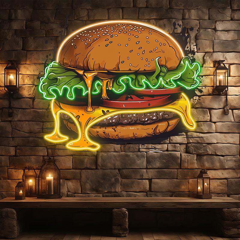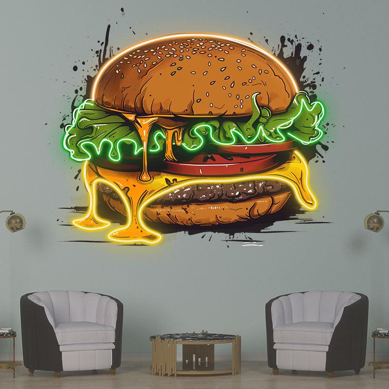 Golden Burger LED Neon signs Lights - Juicy Vegetable & Meat Sandwich Creative Decoration Lights | Home, Restaurant, Party Favors