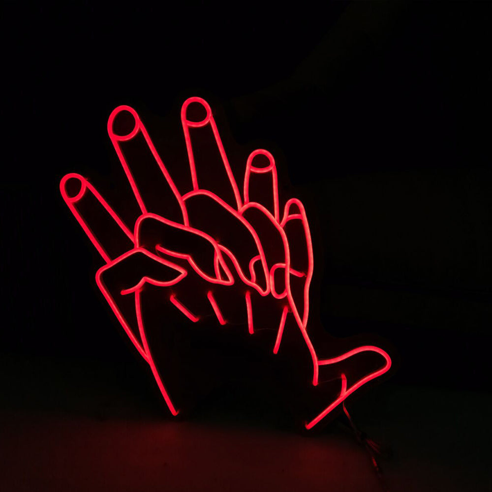 Illuminate your space with our captivating "Hand In Hand" Neon Sign. Crafted with precision, this sign adds a touch of modernity to any room. Using energy-efficient LED lighting, it emits a soft yet vibrant glow. Perfect for home or business, this sign spreads the message of unity and togetherness.