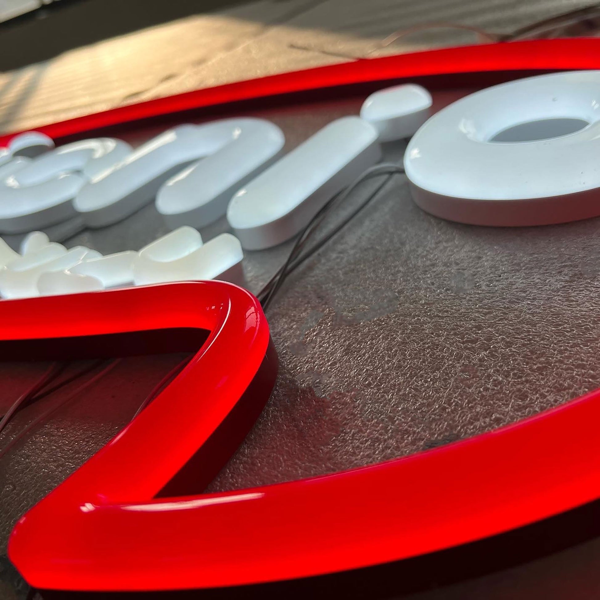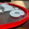 Acrylic faux neon letter signs typically consist of a base layer of high-quality, durable acrylic material. The acrylic is shaped and engraved to form the desired letters or shapes, providing a smooth and sleek surface.