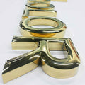 Immerse yourself in the world of sophistication with our non-illuminated reverse stainless steel channel letters, featuring a flawless gold mirror finishe that exudes elegance and durability. Crafted from premium C304/316 stainless steel, these letters are not only lighter but also offer more dimension compared to traditional flat cut stainless steel or aluminum letters. This makes them an ideal choice for businesses seeking a high-quality, visually appealing signage solution that stands the test of time.