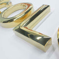The flawless gold mirror finishes on the round faces and returns, reflecting a sophisticated and luxurious aesthetic. The sleek and shiny surface enhances visibility and adds a touch of opulence, making them perfect for high-end branding, signage, and decorative applications.