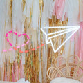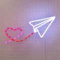 Paper Airplane Neon Sign shining in Brite White, Ruby Red, Hot Pink, and Blush