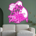 Pink Art LED Neon signs| Bride and Groom Holding Big Flowers Happy Embrace Bust Decoration Light | Suitable for Wedding and Home Decoration