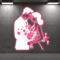 Pink Art LED Neon signs Lights | Bride and Groom Holding Flowers Happy Hugs Decoration Lights | Suitable for Wedding and Home Decoration