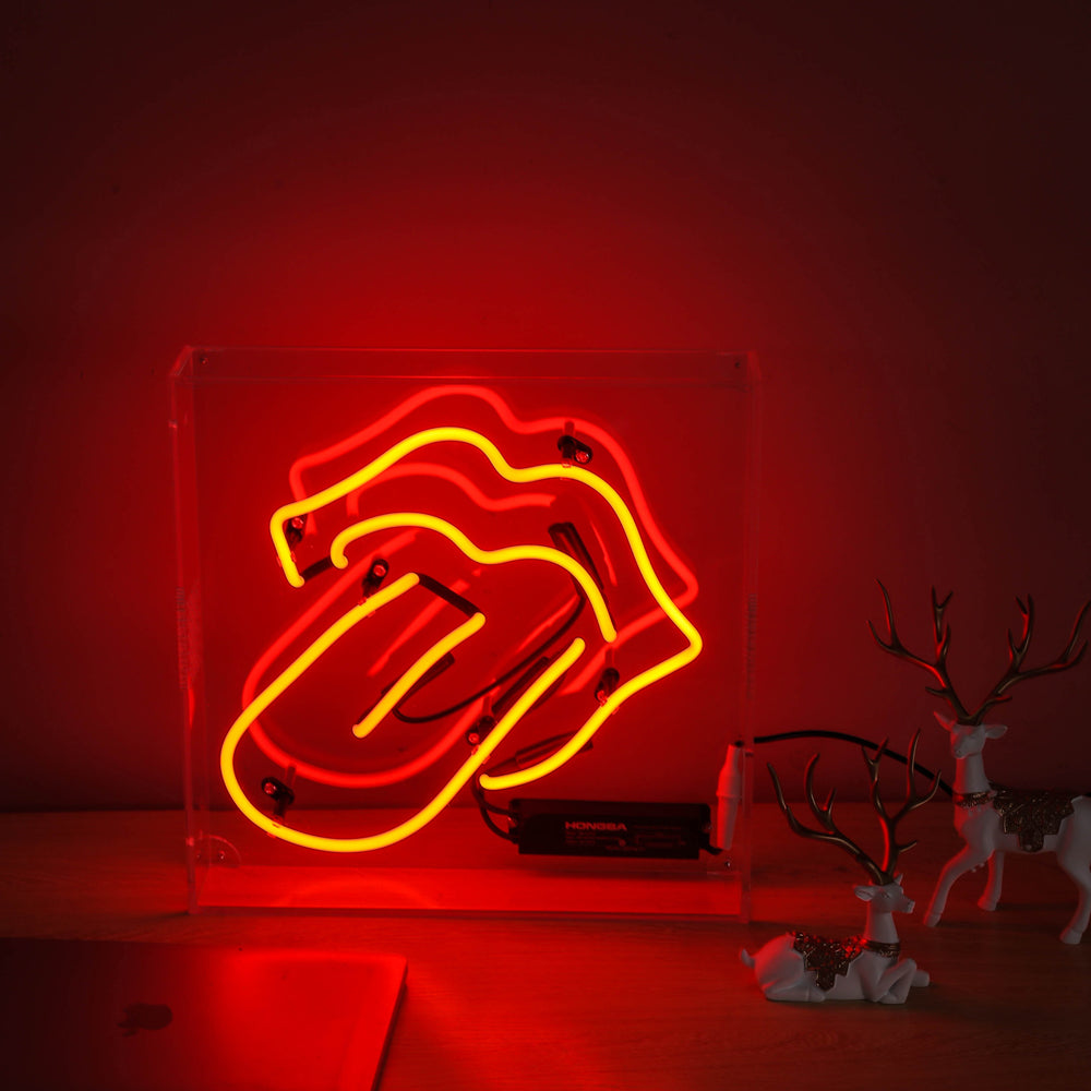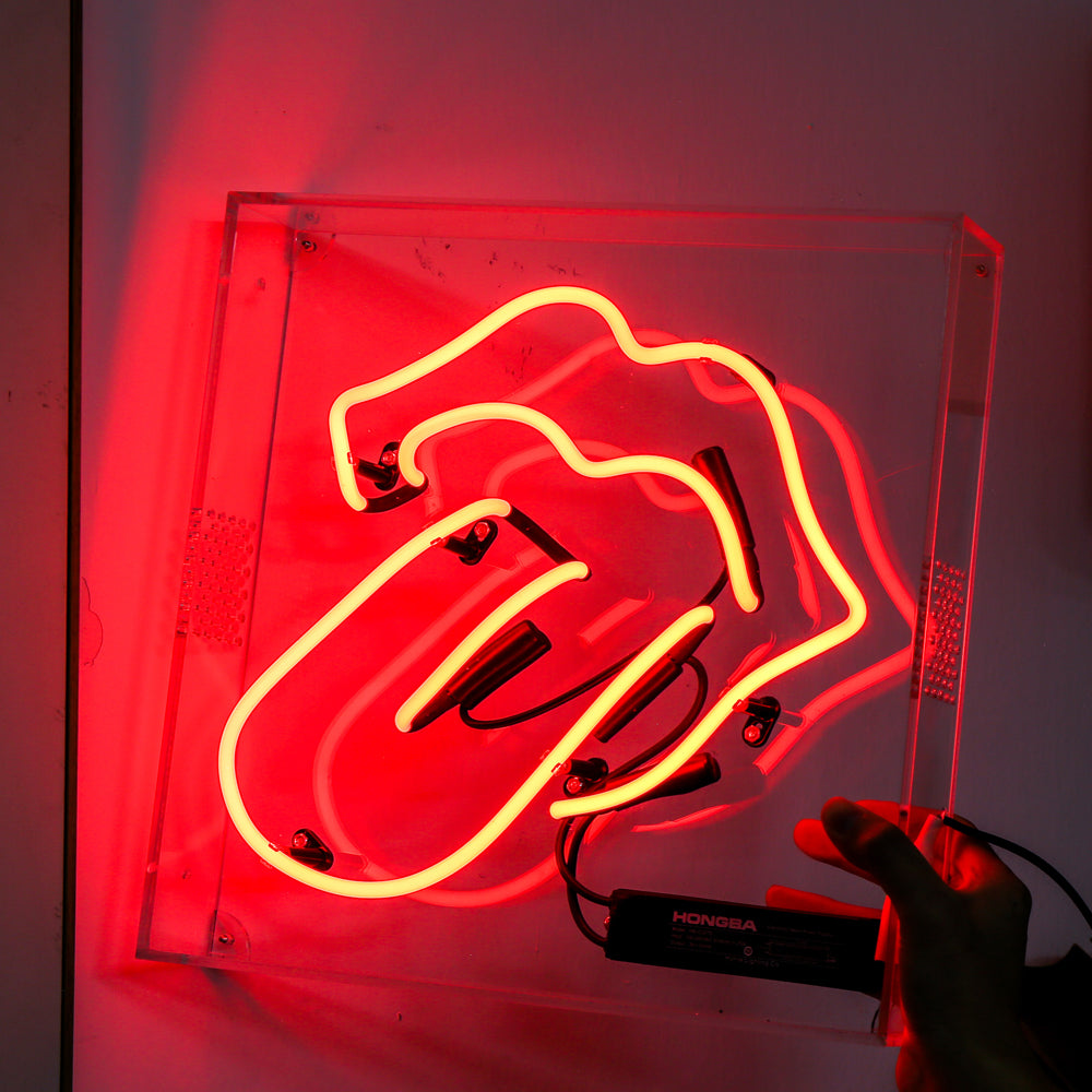 Red neon tongue,neon sign for bar,glass neon tube sign in box