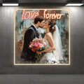 Square Photo Frame Neon signs | Bride & Groom Kissing | Bridal Bouquet | Oil Painting Art Background | LED Wedding Decoration