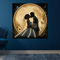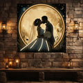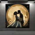 Square Wedding Neon signs| Bride and Groom Kissing Scene | Golden Giant Moon Background | LED Decorative Lighting