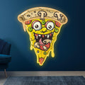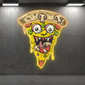Wacky Smiley Pizza Neon signs Lights - LED light fixtures with open mouth laughing, sprinkled with fresh veggies and salad, creative home decor, perfect party atmosphere!