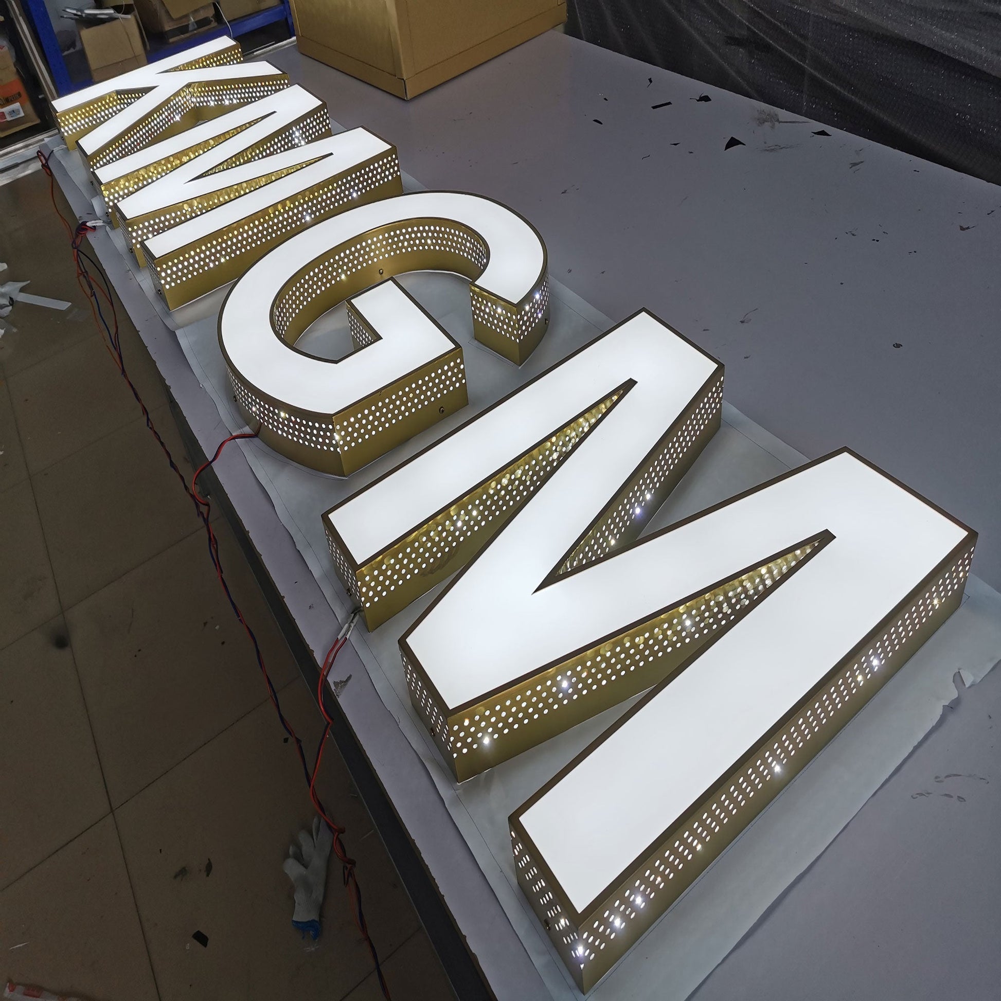 Waterproof Business Custom Punching Holes Led Channel Letters Front-lit LED Advertising Face Illuminated Channel Letter Sign