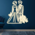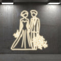 White Lighting Art LED Neon signs | Bride and Groom Hand in Hand Happy Picture Decoration Light | Suitable for Wedding and Home Decoration