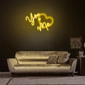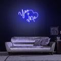 This neon sign featuring the phrase "You + Me" adds a unique, custom touch to any space. The bright neon light is perfect for creating a romantic and playful atmosphere. Made with high-quality materials for long-lasting use.